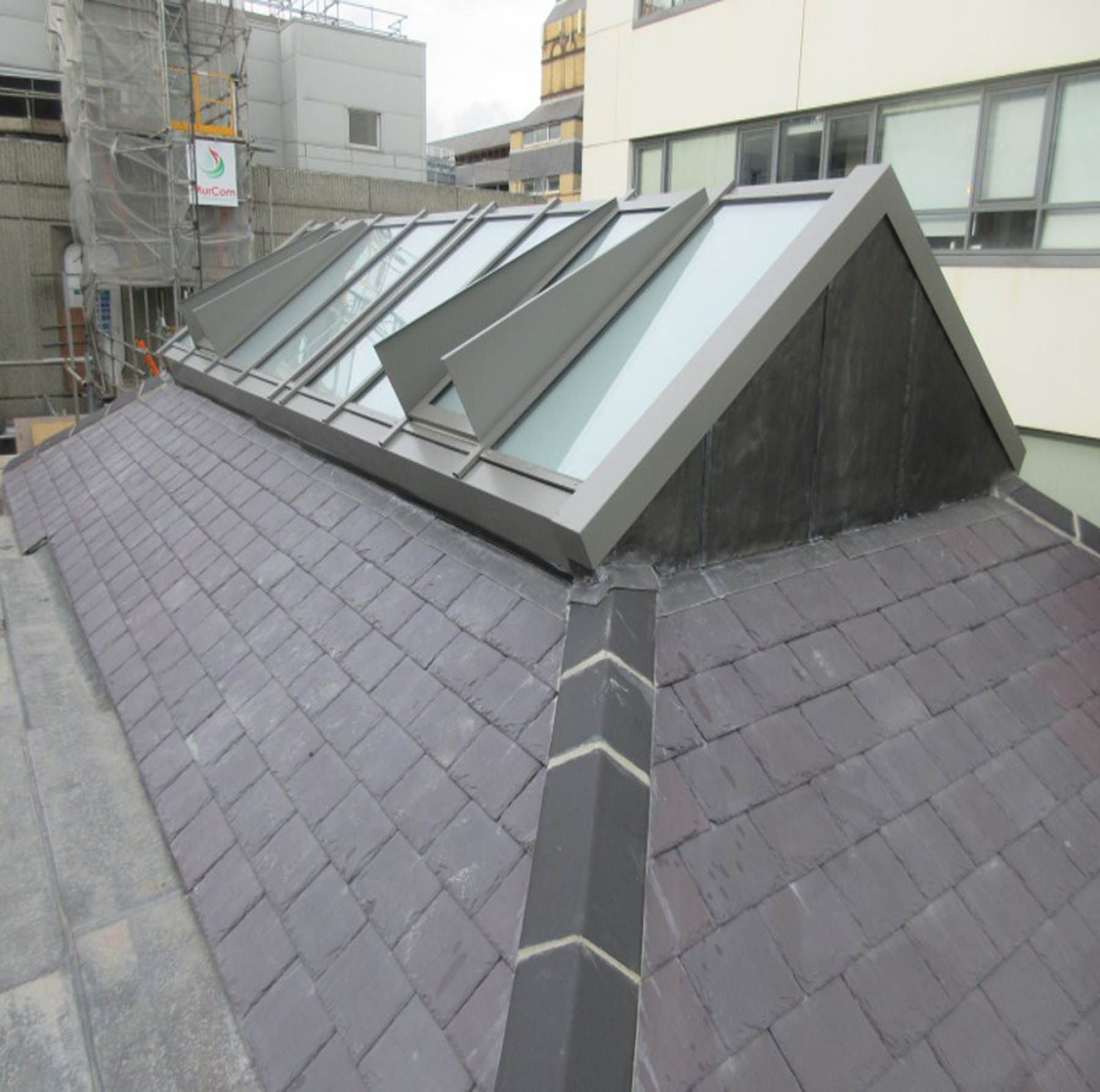 Murcom was tasked with re-roofing the anatomy building roof in two phases. This also involved specialist brick pointing works, replacement of roof windows, copper and lead work. The project required the erection of a complex scaffolding and hoist system. The project required us to hoard along a busy side street, obtain the specific licences and to work closely with Dublin City Council. Other features of the job were that works occurred in listed building with very limited access and in a live campus environment.